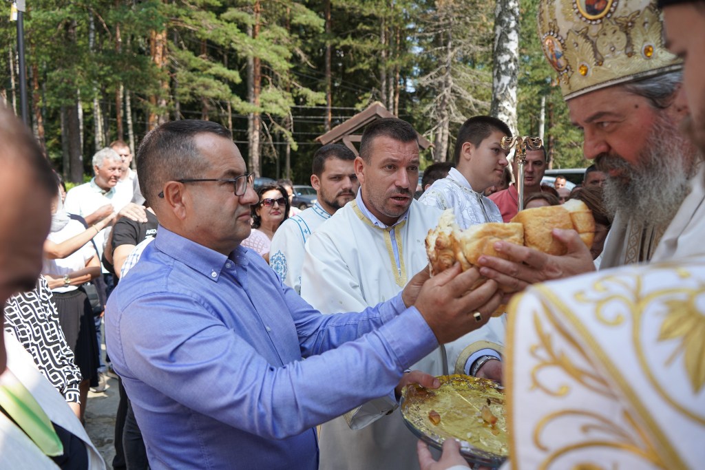 Након Свете Литургије начињен је литијски опход око храма и преломљен славски колач са свечарима и гостима.