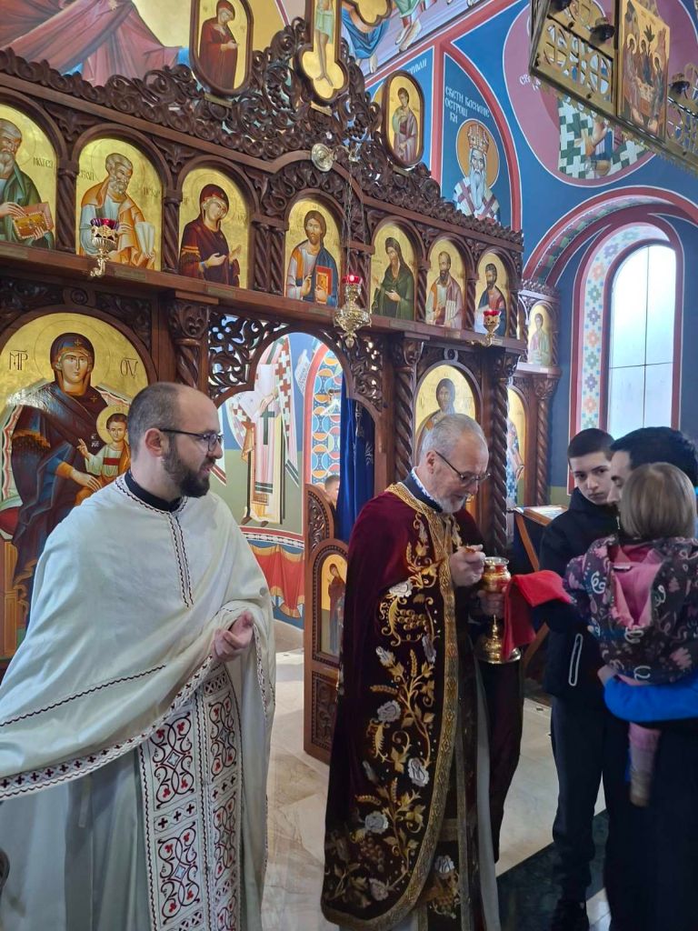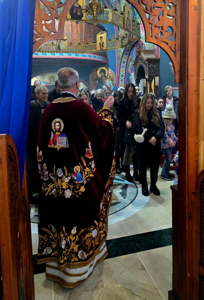 После прочитаног јеванђелског одељка, протојереј-ставрофор Стојадин Павловић произнео је пастирску беседу, у којој је говорио о значају Недеље Светих отаца као породичног празника и духовне припреме за празник Рођења Христовог.