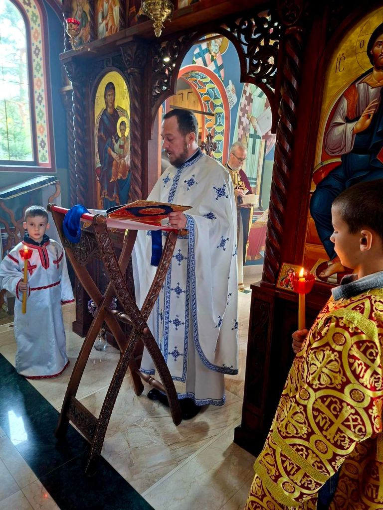 Служене су две Свете Литургије. Прву свету литургију служио је јереј Стеван Сировљевић, док су другу литургију служили протојереј-ставрофор Стојадин Павловић и јереј Душко Перић.